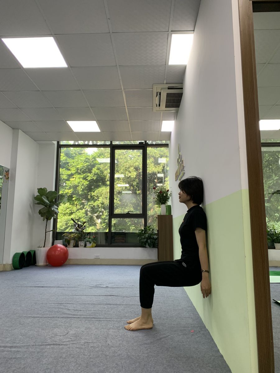 - Nâng cơ thể bằng cách duỗi thẳng chân và không thể lưng rời khỏi tường.