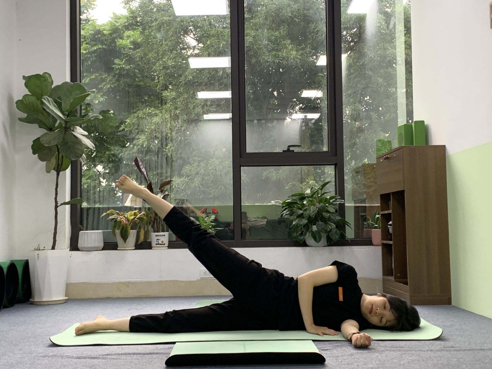 - Siết chặt mông, đùi ngoài và từ từ nhấc chân lên, giữ cho đầu gối luôn thẳng