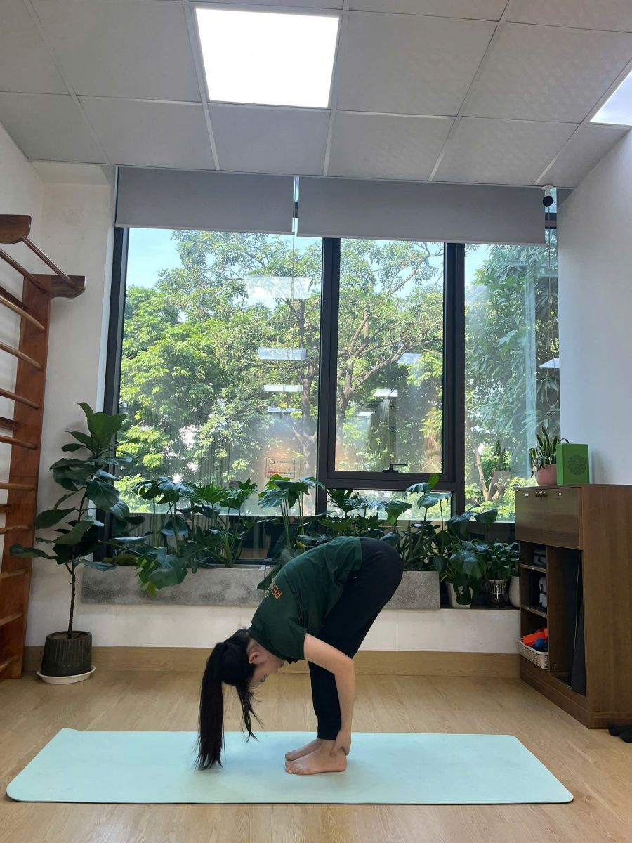 - Gập người về phía trước, thả lỏng đầu và cổ.