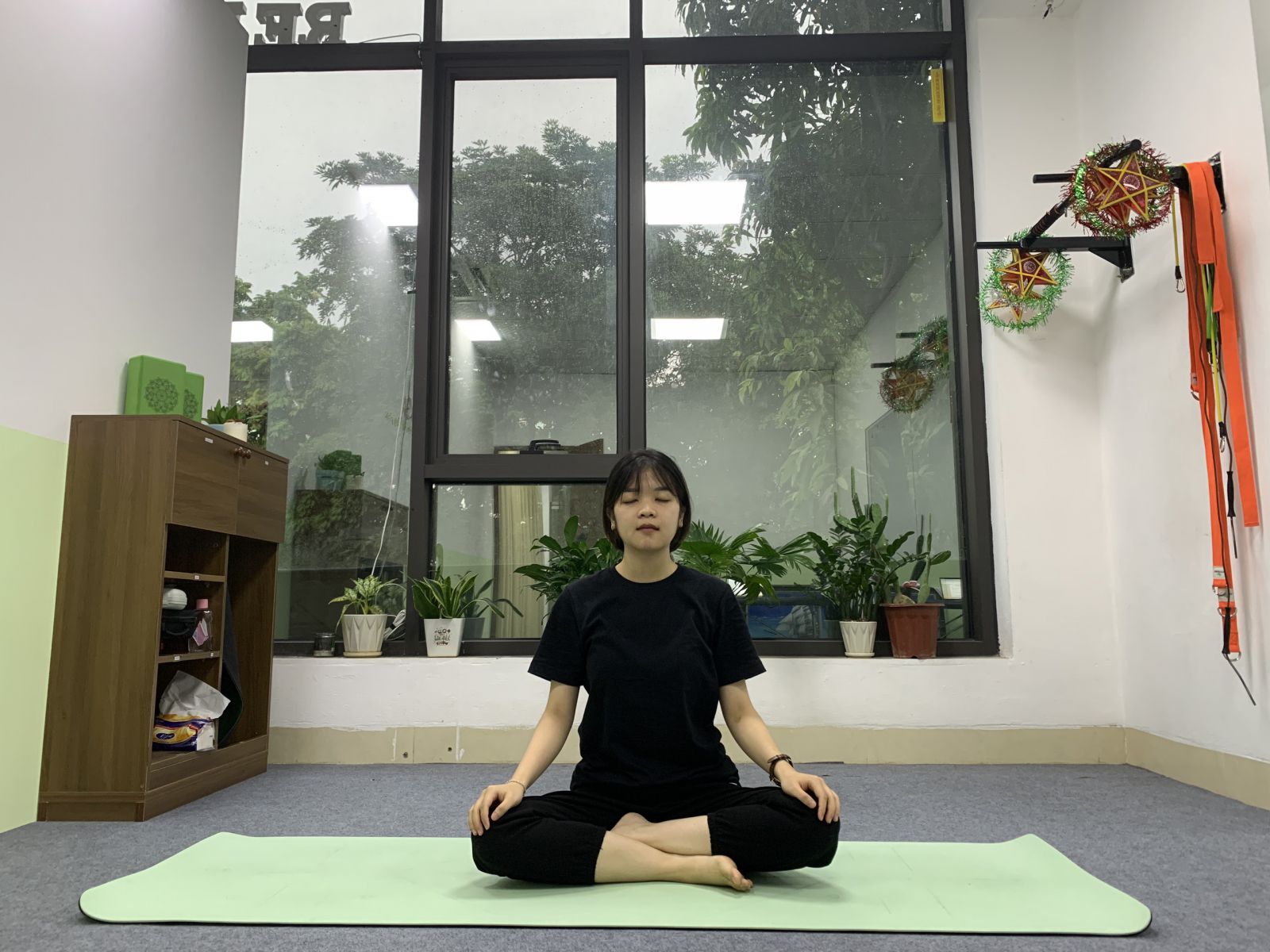 - Đặt 2 tay lên đầu gối, lưng thẳng, từ từ nhắm mắt lại và hít thở sâu.