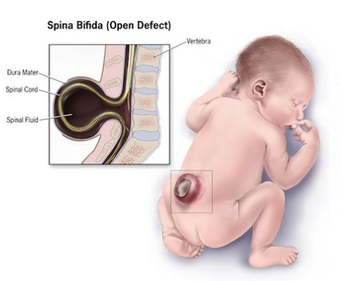 - Thoát vị tủy - màng tủy: Tủy sống và màng tủy xung quanh bị đẩy ra ngoài tạo thành các túi nhỏ trên lưng của trẻ. Đây là loại nứt đốt sống nghiêm trọng nhất, gây ra khuyết tật từ mức độ trung bình đến nặng, gây nhiều di chứng nặng nề.