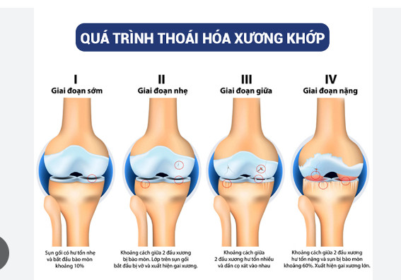 Thoái hóa khớp gối có 4 giai đoạn, mỗi giai đoạn đặc trưng bằng các triệu chứng và dấu hiệu khác nhau.